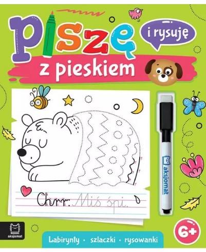 Użyj pisaka, rysuj i pisz po liniach przerywanych oraz szukaj dróg w labiryntach. Wesoły piesek zachęca do nauki pisania oraz kolorowania – co przygotujemałe małe rączki do trudnej sztuki pisania w liniach oraz edukacji szkolnej. Bawiąc się tą książką, dziecko rozwinie również koncentrację, staranność i cierpliwość. Zabawowa forma zachęca do pierwszych ćwiczeń związanych z pisaniem i pomoże rozwinąć logiczne myślenie. Dołączony do książeczki pisak i zmywalny papier umożliwiają niekończącą się zabawę w rysowanie i zmazywanie – nieudaną kreskę można zetrzeć i narysować ją jeszcze raz.. Oprócz ciekawych rysunków, dzieci znajdą tu także krótkie podpisy obrazków, doskonałe do pierszych ćwiczeń w czytaniu. Książka z pisakiem to idealne połączenie nauki i zabawy!Ostrzeżenia dotyczące bezpieczeństwa: OSTRZEŻENIE! Nieodpowiednie dla dzieci w wieku do 3 lat. Zawiera drobne elementy. Ryzyko zadławienia.
