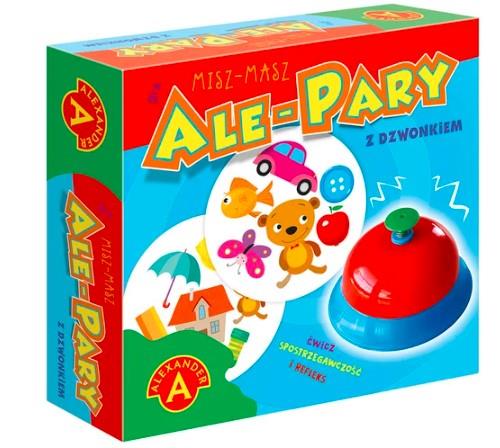 „Ale Pary z Dzwonkiem - MISZ MASZ” to szalona zabawa na spostrzegawczość. Gra składa się z 31 kart, z 6 obrazkami na każdej z nich. Dwie dowolne karty mają po jednym wspólnym obrazku (ale często różnej wielkości). Gra polega na jak najszybszym znalezieniu wspólnego obrazka. Kto pierwszy zobaczy wspólny obrazek na swojej karcie i karcie leżącej na środku stołu uderza w dzwonek i wypowiada nazwę obrazka. Następnie odkłada swoją kartę na wierzch stosu. Zabawa jest świetnym treningiem analizy wzrokowej, umiejętności postrzegania, rozróżniania szczegółów i refleksu. Rekwizyt w postaci dzwonka, który kochają wszystkie dzieci. Dwa warianty zabawy.