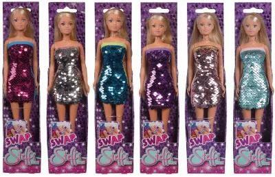 Marka lalek Steffi Love z 30 - letnią tradycją zachwyca podążaniem za aktualnymi trendami. Steffi Love w sukience cekinowej, która zmienia kolor po przewróceniu cekinów to idealna propozycja dla wszystkich małych fashionistek. Dostępna w 6 wariantach kolorystycznych: - fioletowa zmieniająca się w srebrną i odwrotnie, - niebieska zmieniająca się w żółtą i odwrotnie, - różowa zmieniająca się w niebieską i odwrotnie, - srebrna zmieniająca się w kolorową i odwrotnie, - różowa zmieniająca się w złotą i odwrotnie, - błękitna zmieniająca się w różową i odwrotnie, Wysokość lalki: 29 cm, odpowiednia dla dzieci w wieku 3+.