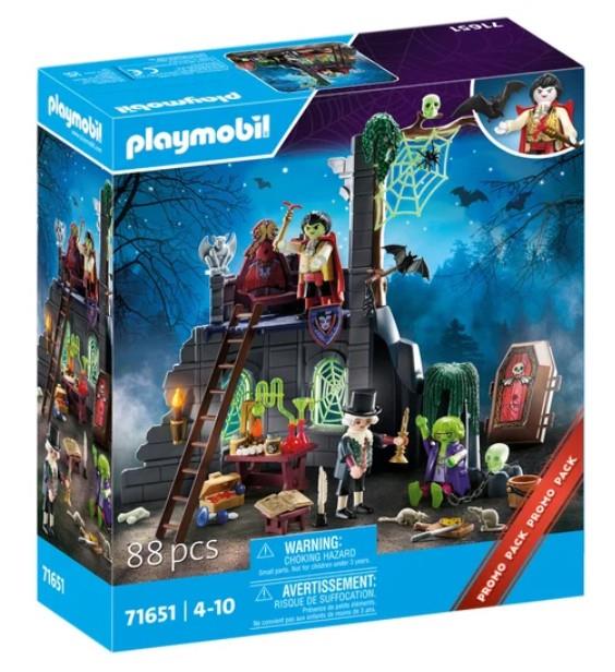 PLAYMOBIL-Upiorne Ruiny z trzema figurkami PLAYMOBIL, ruiną, trumną, nietoperzami, pająkami i wieloma innymi dodatkami do ekscytujących zabaw w odgrywanie ról w pokoju dziecięcym.W upiornych ruinach czekają straszne przygody. Nawet nietoperze i szczury boją się potwora i wampira. Nad jakimi tajemnymi miksturami tutaj pracują? Zestawy promocyjne PLAYMOBIL oferują ogromną zabawę w niskiej cenie! Ten szczegółowy zestaw PLAYMOBIL zawiera ruiny zamku, trzy figurki PLAYMOBIL, kilka pająków, trumnę oraz wiele innych strasznych dodatków do ekscytujących zabaw w odgrywanie ról w pokoju dziecięcym. Upiorne ruinyFigurki: 1 człowiek, 1 wampir, 1 potwór